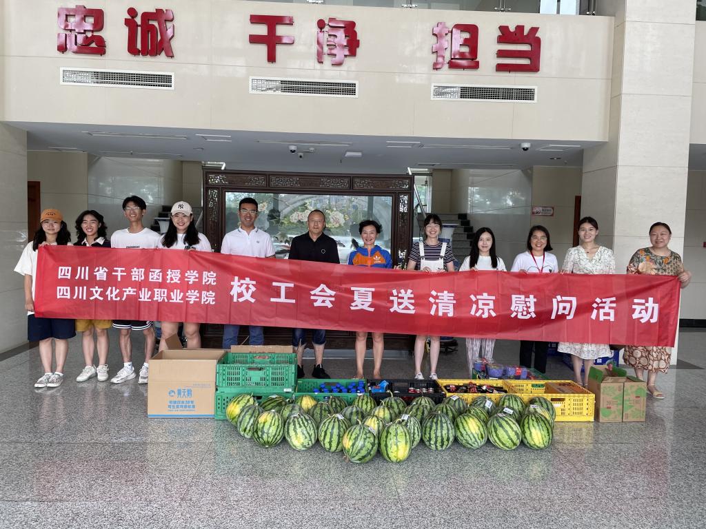 时值盛夏,热浪滚滚,四川省干部函授学院四川文化产业职业学院的部分教职员工们主动放弃暑假休息时间,全身心奋斗一线,对待工作的热情如同七月的似火骄阳。7月12日,校工会及时为一线员工送去夏日清凉,为教职员工们送去学校党政工满心的关爱和问候。