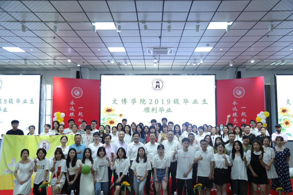 典礼中播放了学院领导、教师、辅导员代表录制的《致2022届毕业生的寄语》短视频,学院为2019级全体毕业生定制了专属印章纪念品,并在院旗上留下印记,将大学生活最美好的时光定格在文博学院,典礼在团学干部合唱《凤凰花开的路口》中圆满结束。