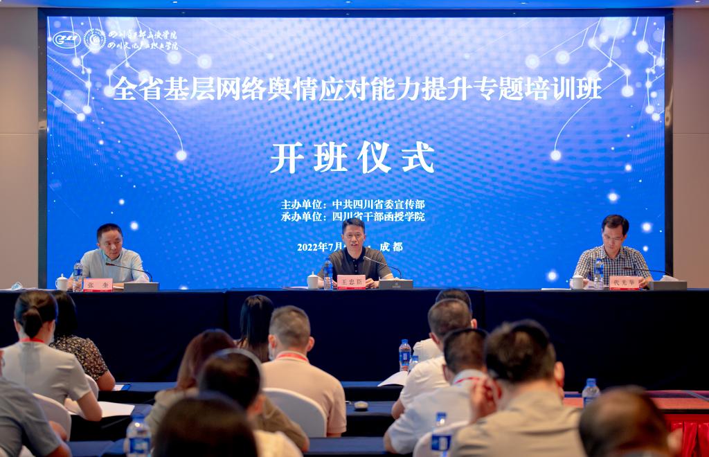 7月4日至7月7日,由省委宣传部主办,我校承办的全省基层网络舆情应对能力提升专题培训班顺利举办。省委宣传部副部长、省委外宣办(省政府新闻办)主任王忠臣同志出席开班仪式,并作动员讲话。校党委书记代光举出席开班仪式并致辞。省委宣传部舆情信息处处长张奎主持开班仪式。