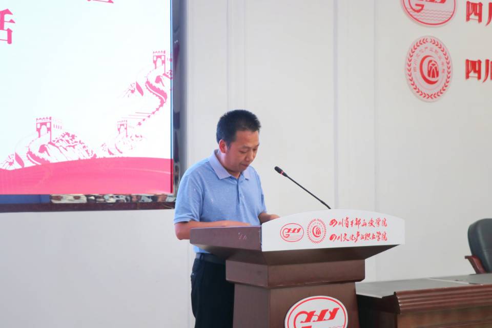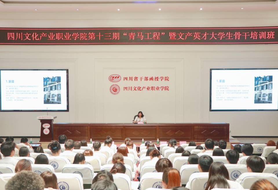 6月18日下午13时,四川文化产业职业学院第十三期“青马工程”暨文产英才大学生骨干培训班开班仪式在二教105多功能厅举行。学校党委委员、副院长肖必恒出席活动。开班仪式由校团委书记兰楠主持。马克思主义学院党总支副书记马吉宏,各二级学院分团委负责人,校团委全体老师,以及全体青马学员160余人参加了此次开班仪式。