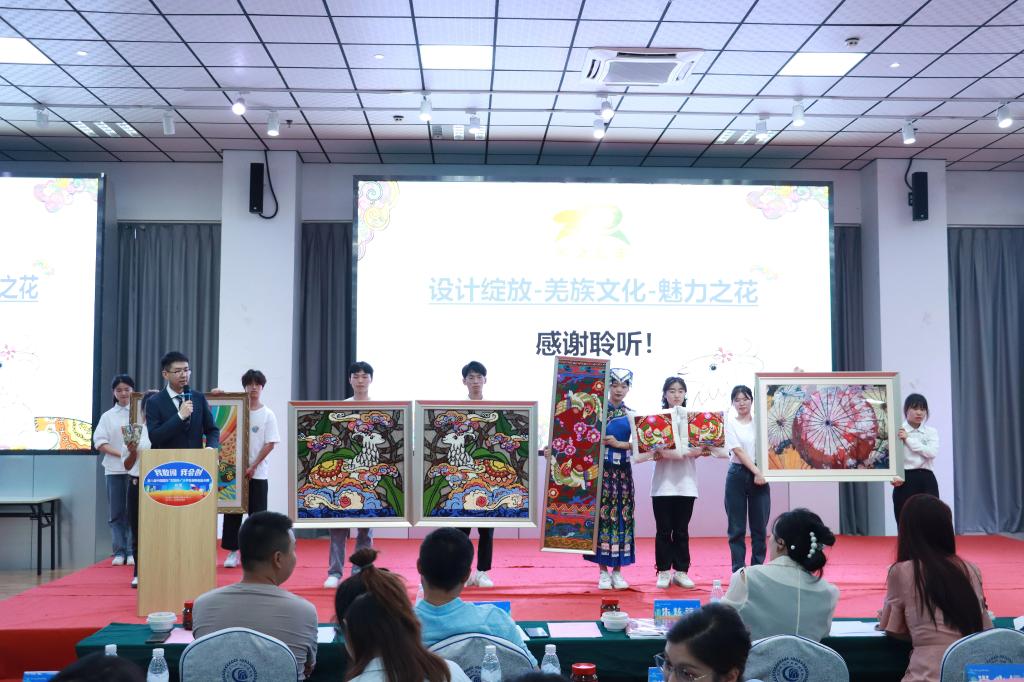 经过二级学院推选、资格审查、网络评审等环节,共有15个项目入围决赛进行现场路演答辩。答辩现场,各项目答辩人通过PPT展示和现场演讲方式介绍项目创新性、发展前景、可行性与落地性等关键内容。评委老师根据展示内容,围绕项目理念,产品技术、运营推广等方面进行互动提问,对项目进行综合评价。经过激烈的角逐,艺术学院的“羌之云羊 多彩羌“绣”——羌族文创产品设计与开发”项目在本次大赛中获得第一名。