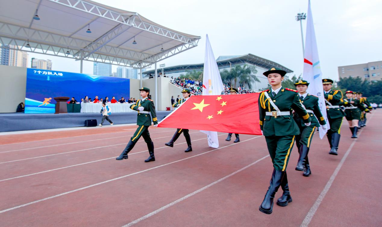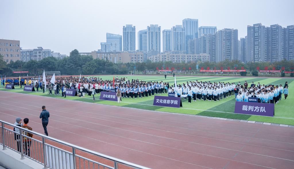 11月17日,踏着运动员进行曲的旋律,国旗方队引领着六个二级学院方阵走过主席台,我校2022年秋季运动会在文星湾足球场拉开序幕。师生们以饱满的精神状态奋进新征程,以实际行动为党的二十大报告中提出的“促进群众体育和竞技体育全面发展,加快建设体育强国”贡献力量。全体在校校领导出席开幕式,开幕式由通识教育部主任傅丽主持。