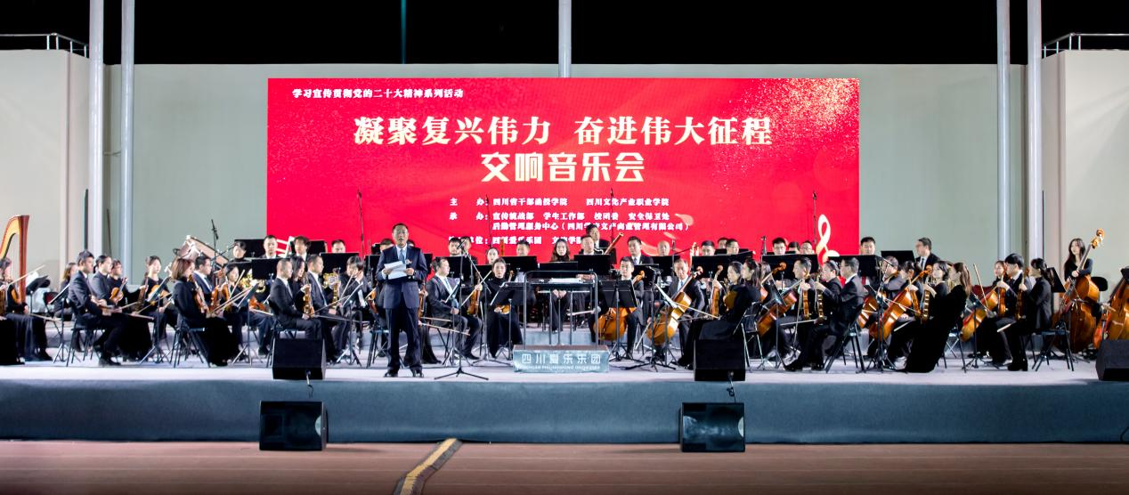 为深入学习宣传贯彻党的二十大精神,积极响应省委宣传部、省直机关工委和省委教工委高雅艺术进校园要求,加强校园文化建设,营造和谐的校园文化氛围,11月16日晚,我校在文星湾足球场举行“凝聚复兴伟力,奋进伟大征程”交响音乐会。校党委委员、副院长朱霖及各二级学院领导、师生代表共聚一堂,一起重温熟悉的经典旋律,共同感悟美好的艺术魅力。