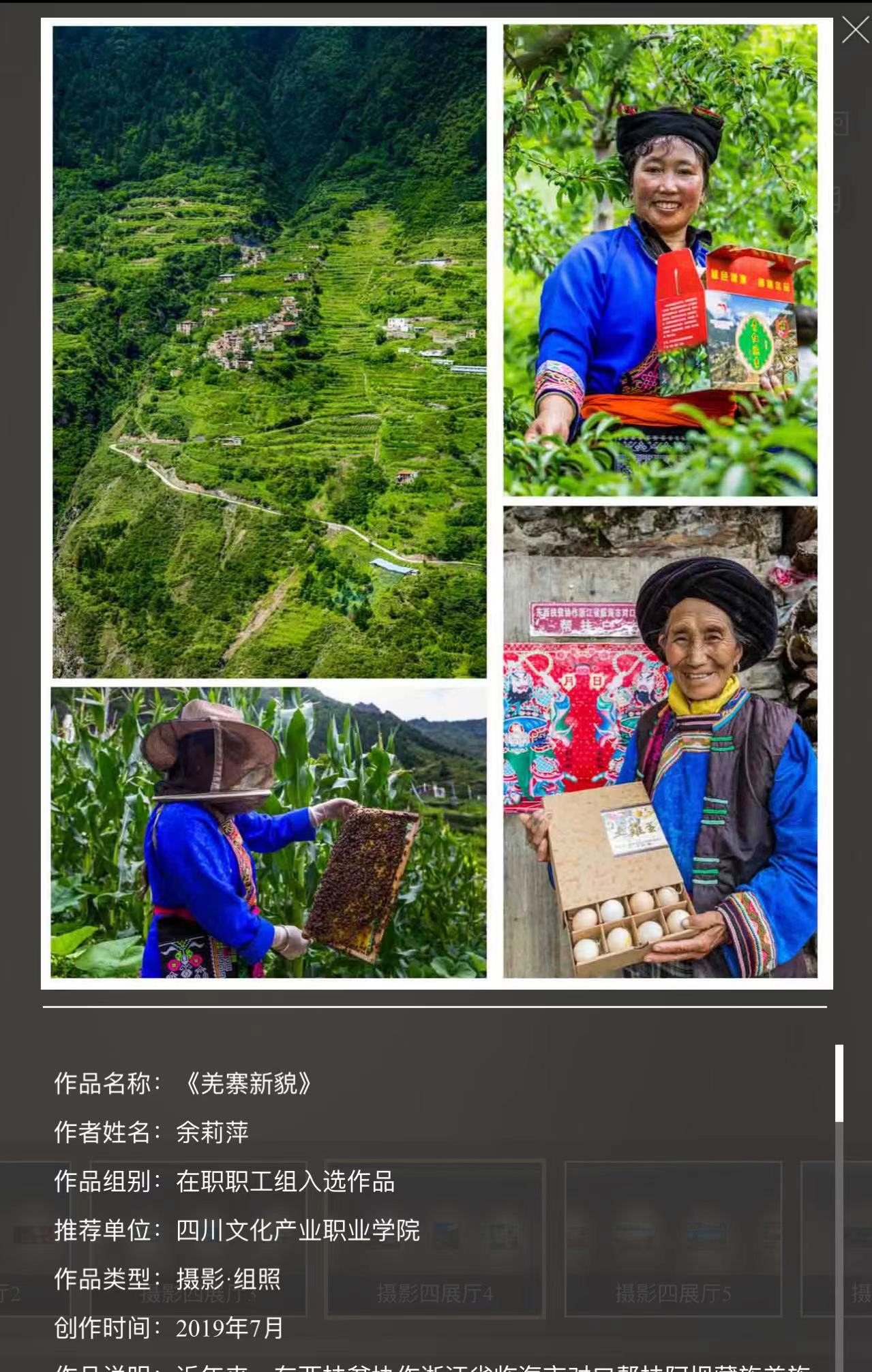 近日,我校融媒学院教师余莉萍摄影作品《羌寨新貌》作为优秀作品获省直机关工委、省文学艺术界联合会“喜迎二十大 奋进新征程”省机关干部职工主题书法绘画摄影作品展线上线下公开展览。
