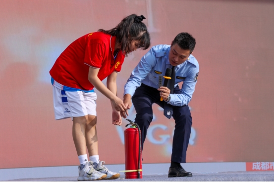 成都市利民消防宣传中心主任刘建涛现场讲解灭火器的使用