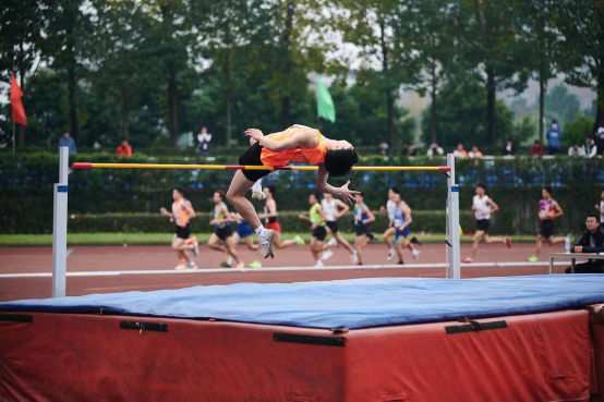 我校学生彭明参加跳高赛项