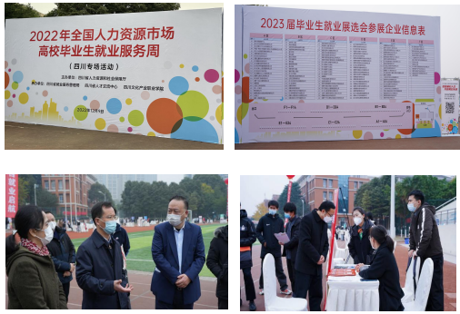 12月9日,“2022年全国人力资源市场高校毕业生就业服务周(四川专场活动)暨四川文化产业职业学院2023届毕业生就业展选会”在我校成功举办。校党委书记代光举、院长罗晓东、副院长黄萍,省人才交流中心学工部部长陈奇参加活动。