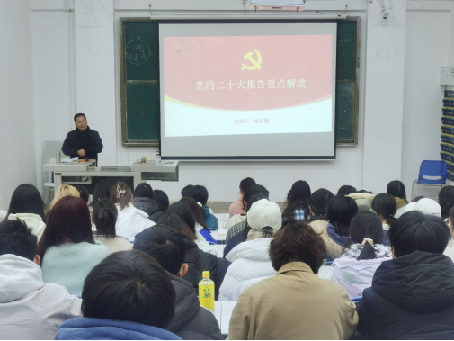 12月9日,校党委委员、副院长肖必恒以“党的二十大报告要点解读”为题,为2022级中文1班和2班学生进行授课。他解读了二十大的热点问题,重点讲解了在实施科教兴国战略中,高等职业教育迎来了发展的春天,作为高职院校的学生,如何迎接挑战和抓住机遇等,他引导学生深入思考和分析自身的优势、精准定位并付诸行动。课后,同学们纷纷表示,自己要树立清晰目标,奋发有为。