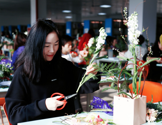 讲座中,马力为介绍了中国插花历史,并讲述花卉的特色与选择、保养与摆放,以及插花的基本技巧。他表示,插花艺术已经成为重要赛项,希望学校积极培养学生参与到赛事中去。