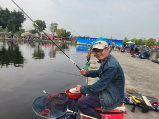 在春阳明媚、山花烂漫的垂钓现场,参赛选手抽签决定钓位。随着裁判员一声令下,一根根钓线应声入水,选手们凝心静气,专注于水面微波荡漾、浮漂沉起,只见参赛队员们起竿、操网、取钩、鱼获入护,动作娴。