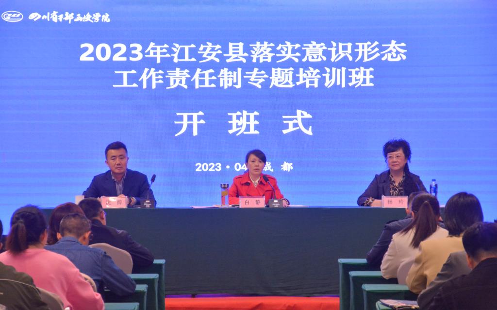 4月2日,宜宾市江安县落实意识形态工作责任制专题培训班在我院开班,宜宾市江安县委常委、宣传部部长白静出席开班仪式并作动员讲话。