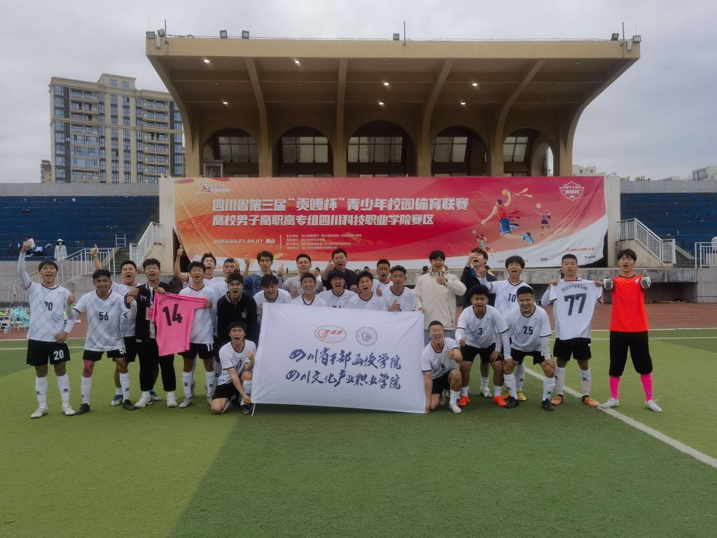 4月3日至4月5日,在校园足球联赛高职高专组中,我校男子足球队发扬顽强拼搏、永不放弃的体育精神,先后以2-2乐山职业技术学院,2-1西昌民族幼儿师范高等专科学校,3-2成都纺织高等专科学校的战绩,取得H组第一名,首次打入全省八强,挺进总决赛。比赛中,队员们不仅为了胜利而拼搏,更展示出以学校为荣的凝聚力、战斗力,充分展现了文产学子积极向上的精神面貌,受到了组委会和现场观众的一致好评。