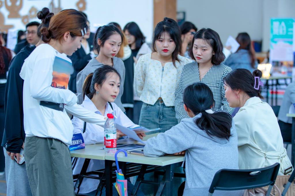 此次双选会主要面向文化旅游学院2023届毕业生和2021级旅游管理专业实习学生,通过文旅学院校企合作资源库优选、旅游行业协会组织等渠道,共邀请成渝两地近50家文旅企业入校招聘。各大旅行社、旅游景区、宾馆饭店、旅游度假区、研学基地共为我校学生提供实习就业岗位近600个。在成渝地区双城经济圈高校联合访企拓岗活动的推动下,重庆长江轮船有限公司、重庆华邦酒店旅业有限公司、重庆华侨城欢乐谷等重庆企业也入场招聘。当天,参与求职的毕业生共计278名,投递简历共275份,参与面试学生共计243名,初步达成实习就业意向共计180余人。