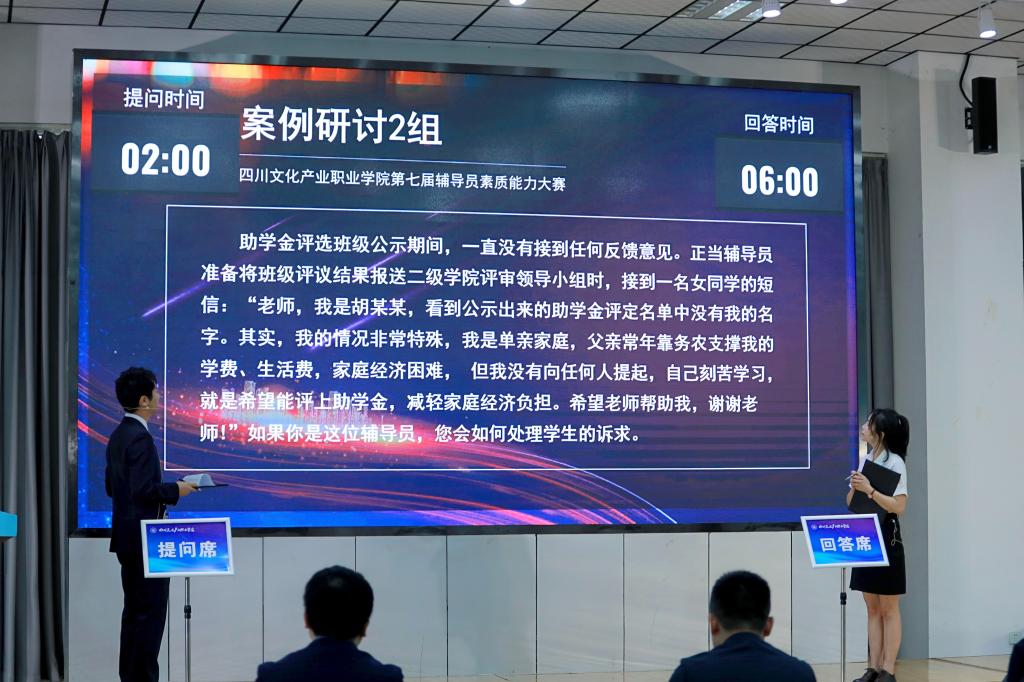 此次大赛邀请到四川师范大学专职辅导员卓飞(四川省第五届、第八届辅导员素质能力大赛一等奖获得者),成都工业职业技术学院、四川交通职业技术学院、四川邮电职业学院、成都艺术职业大学等学生工作部门领导、专家担任前期题目咨询和决赛评委。学校对标省赛各环节标准打造校赛,提升了举办校赛的水平和质量。