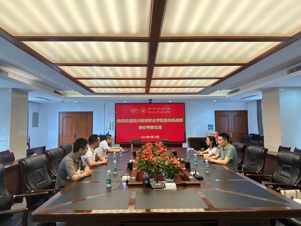 5月18日,四川财经职业学院宣传统战部负责人王东一行来我校调研交流,宣传统战部、信息化办公室参加交流座谈会。