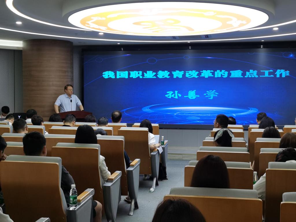 孙善学教授以我国职业教育改革的重点工作为题,全面梳理了2014年全国职业教育工作会议以来,习近平总书记关于发展职业教育的重要论述和指示精神,对党中央在新时代中国教育的总体部署进行了解读,从技能人才,产教融合、创新思想、体系构想全面阐释了中国特色职业教育的创新架构,从十六个方面介绍了当下职业院校改革发展的重点任务。清华大学教育研究院博士后杨成明以高职院校信息化教学发展的现状与思考主题进行了发言。中国地质大学出版社副主编张琰就“十四五”规划教材编写经验进行了分享。论坛座无虚席、反响热烈,参加人员纷纷表示,孙善学教授以及各位嘉宾的演讲既有我国职业技术教育的宏观描述,又有微观解读,内容丰富充实,极具思想性和学术性,听后很受启发。