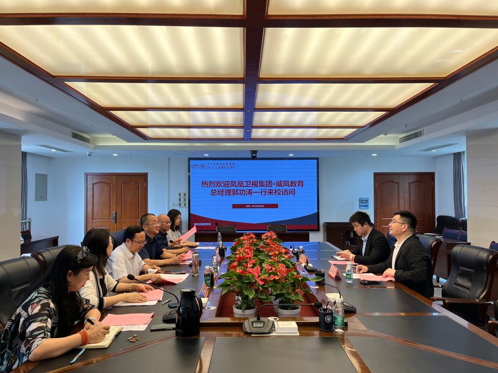 为充分发挥校企合作育人优势,培养高素质高技能应用型人才,为学生实习、实训、就业提供更多渠道,6月5日,凤凰卫视集团·威凤教育总经理郭功涛一行应邀参访学校。