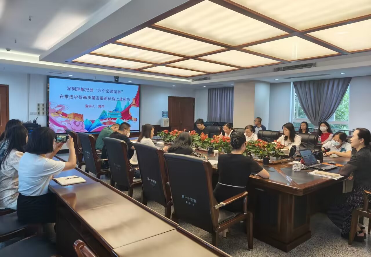 开展讲党课活动。6月30日,院长罗晓东以《中华优秀传统文化与马克思主义中国化的三次历史性飞跃》为题,为行政部门和教学单位负责同志开展主题教育专题党课。罗晓东认为,中华优秀传统文化是中华民族的根和魂,是中华民族的精神命脉。马克思主义之所以能够在中国广泛传播,并得到中国人民的认同,一方面在于这一先进理论能够指导中国解决近代以来所面临的种种问题,能够为中国社会发展指明方向,另一方面还因为中国共产党能够“坚持把马克思主义基本原理同中国具体实际相结合、同中华优秀传统文化相结合”,不断推进“马克思主义中国化时代化”,并实现了马克思主义中国化的三次飞跃,创立和形成了毛泽东思想、中国特色社会主义理论体系、习近平新时代中国特色社会主义思想。此外,副院长黄萍以《深刻理解把握“六个必须坚持” 在推进学校高质量发展新征程上建新功》为题,为分管部门和联系学院开展主题教育专题党课,要求与会党员干部深刻把握“六个必须坚持”的科学内涵和实践要求,内化为自身的理论素养和行动自觉,切实把理论武装成果转化为实实在在的工作成效,求真务实、奋发作为,在推进学校高质量发展新征程上建新功。