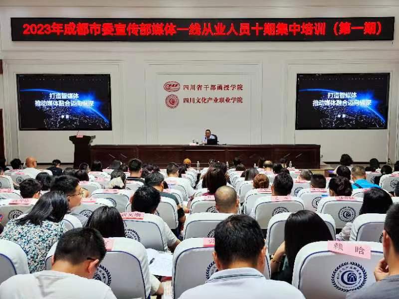 6月28日,受成都市委宣传部委托,省干函院承办的成都市媒体一线从业人员第一期集中培训班顺利开班。培训旨在深入学习宣传贯彻习近平新时代中国特色社会主义思想,以及习近平总书记关于新闻宣传的重要论述精神,全面加强全市新闻工作队伍能力建设,提升全市媒体一线从业人员的推进媒体融合发展、智媒体背景下的报道创作、重大赛事宣传报道、舆情危机处置等方面的专业素质。成都市媒体一线从业人员集中培训计划举办10期,培训对象为市广播电视台、成都传媒集团、各区(市)县融媒体中心编辑、记者、主持人及成都高质量发展专班记者等约1400人。(省干函院<文产院>、成都市委宣传部)