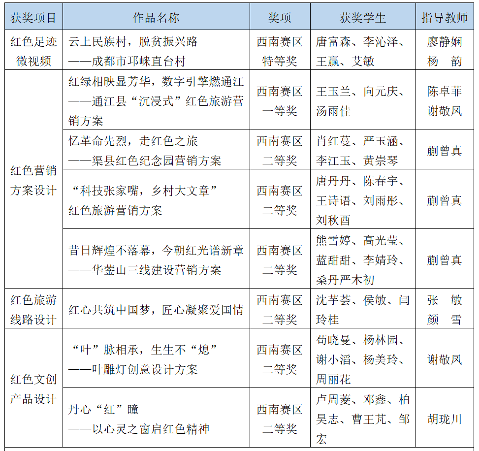 我校在第十三届全国大学生红色旅游创意策划大赛获奖一览表