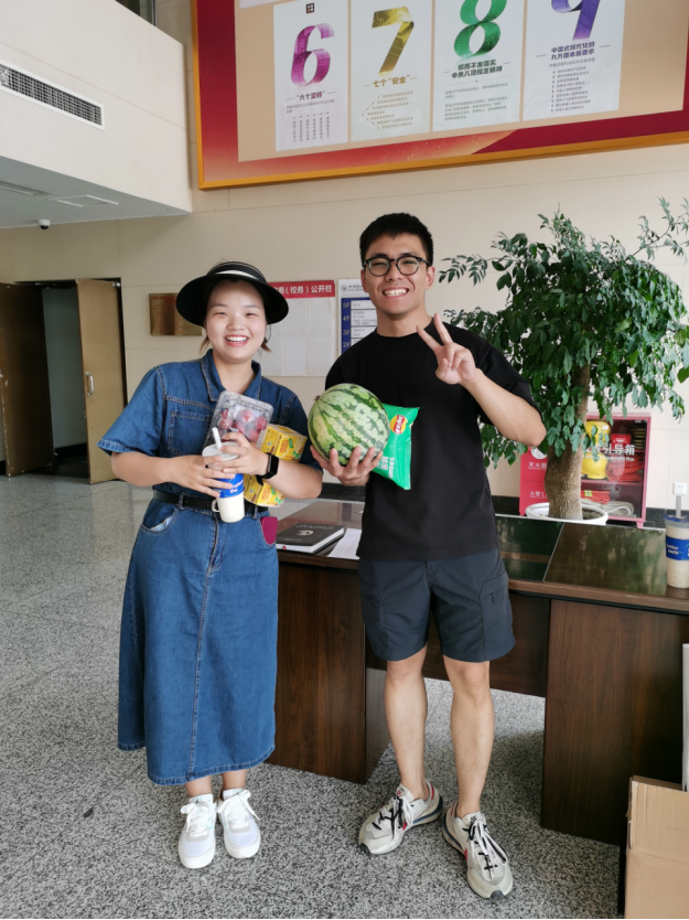 7月10日,已经放假的校园里活跃着近200名教职员工的身影,他们放弃了暑假休息时间,埋头在各自岗位辛勤工作。校工会及时给大家送来了清热解渴的大西瓜、荔枝、菠萝、薯片、香妃梨和各类清凉饮料等,把学校党政及工会组织的关心关爱送到坚守一线教职员工的手中。