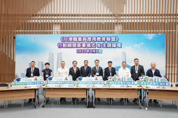 9月6日,我校应邀赴香港参加“川港职业与应用教育联盟”行动纲领签署仪式暨主题论坛,与港方院校签署了《川港职业与应用教育联盟2023-2025行动纲领》、《应用教育文凭全方位学习活动合作备忘录》,分别围绕川港文化民情交流计划、教育教学合作学分互认计划、应用教育文凭全方位学习等洽谈并达成一致,现场签订了合作协议。通识教育部主任傅丽、融媒学院院长秦勉作为我校代表团成员参加了大会。