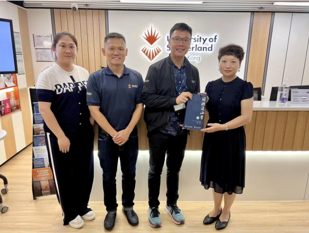 我校代表团访问英国桑德兰大学香港校区(左二为校区负责人林国财,右二为招生总监Dennis)