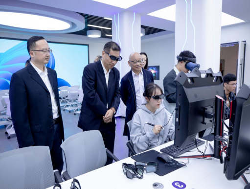 孙锐一行先后参观了我校巴蜀文化教育普及基地、教师教学发展中心、校史馆、全媒体创研生产平台、数字非遗文创虚拟仿真实训基地,详细了解了学校发展、专业建设、师资队伍建设和社会培训等情况。