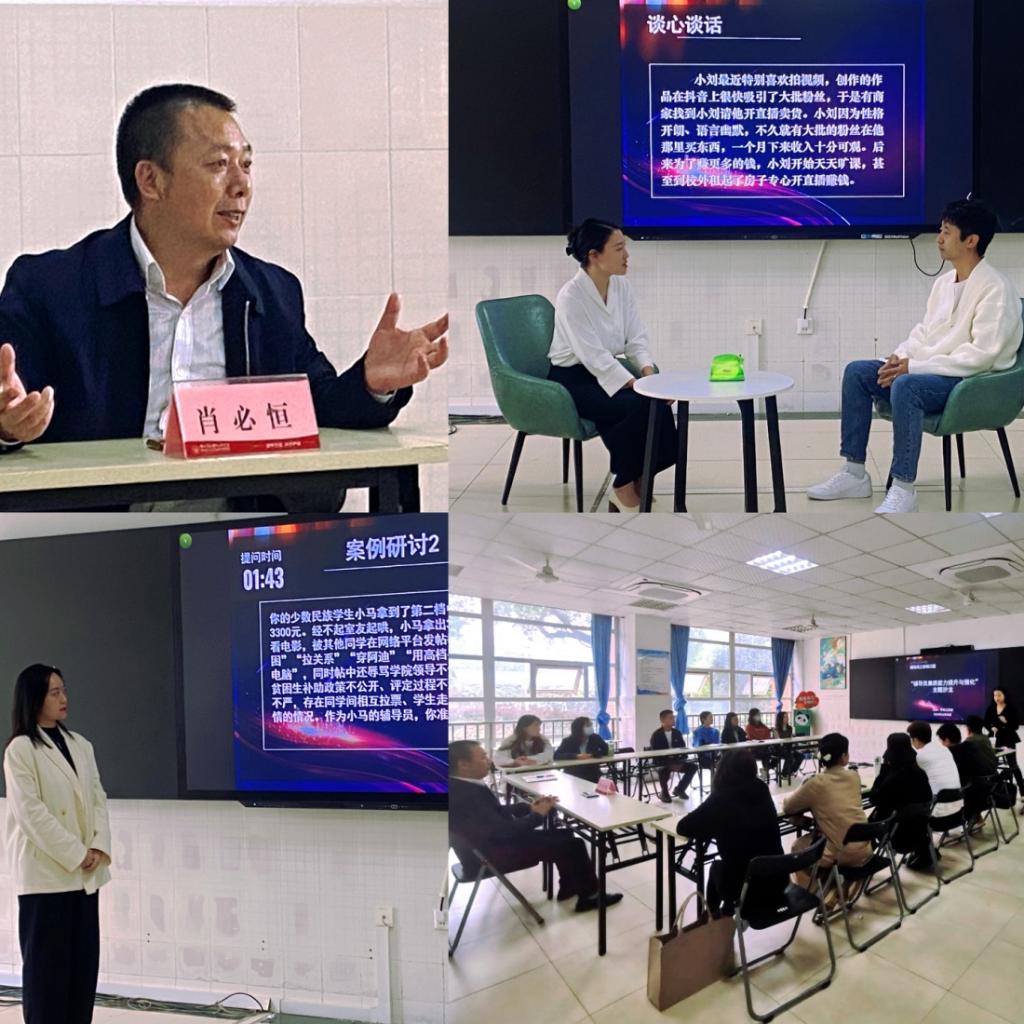本次活动以“辅导员素质能力提升与强化”为主题,旨在促进辅导员队伍的专业成长与素质提升。活动围绕辅导员案例研讨、谈心谈话展开,3名辅导员结合工作中存在的问题进行了案例研讨、谈心谈话技巧模拟分享。活动中,来自各二级学院的辅导员代表踊跃发言,积极探讨工作、交流心得、分享经验。