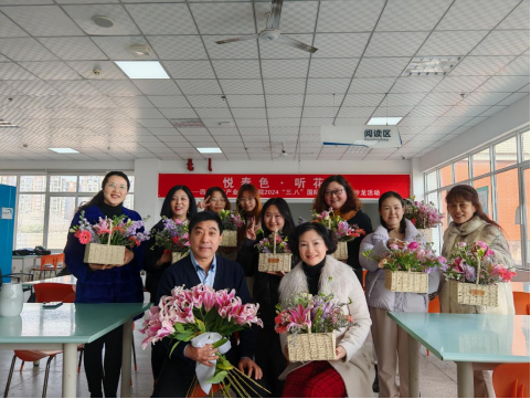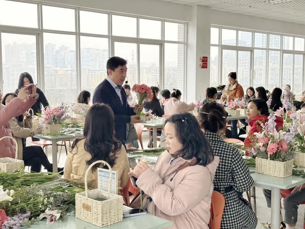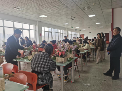 在马力老师现场示范教学中,女职工们边看边学边动手实践,一盆盆生机盎然的花束跃然眼前。200余位女教师参加了插花活动,大家愉快地讨论着自己的原创花艺作品,带着满满的喜悦度过了一个温馨浪漫的节日。