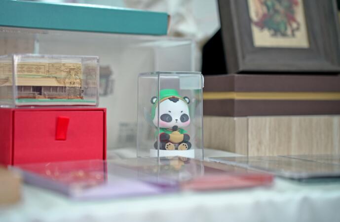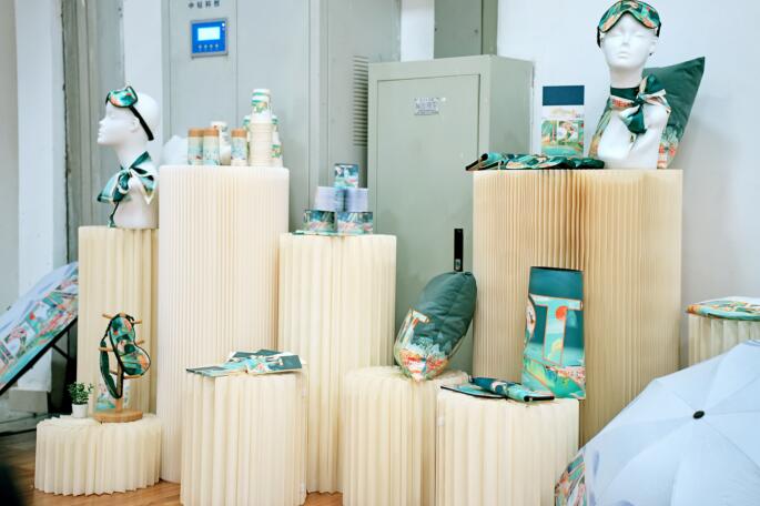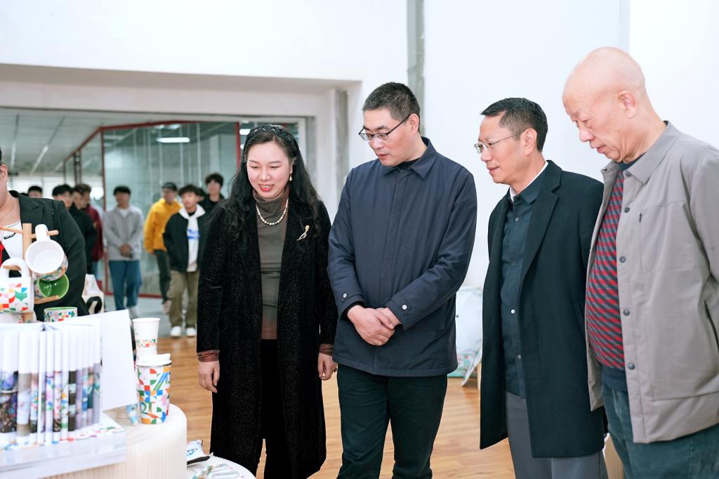 路演前,朱霖与参会嘉宾一行参观了我校文创产品展台。