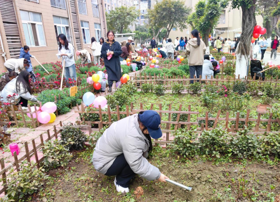 活动中,小花圃认养寝室的同学们带着铁锹、铲子等工具投身至种植活动中,同学们默契配合、分工合作。在种植过程中也了解了不同植物的生长特点和养护技巧。