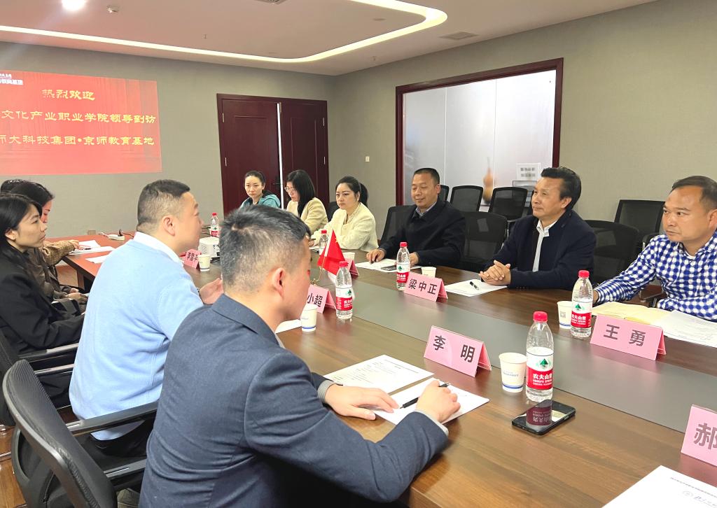 肖必恒介绍了学校以产建群、以群建院在人才培养培训方面取得的成绩。他表示,京师教育基地的运营理念与办学思想值得学习和借鉴。人才培养要始终面向产业发展和市场变化,坚持以能力为中心,以就业为导向。文旅学院院长梁中正介绍学院的专业设置和人才培养特色,表示下一步将深耕细作,落实项目,拓展更大的合作空间。