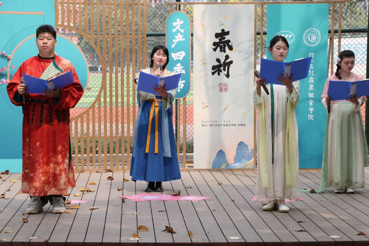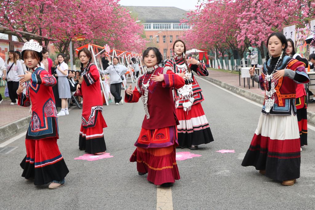 春风拂面,樱花盛开。为深入学习贯彻习近平文化思想,弘扬中华优秀传统文化,丰富校园文化生活。3月21日,校团委、通识教育部在校园沐熙路开展“文产四季市·春祈”樱花季活动。
