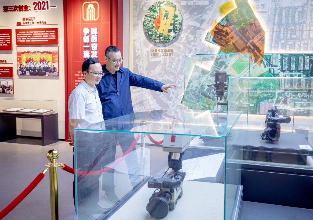 在校史馆,罗晓东介绍了学校发展历程与建设成就,杨杪对我校勇担历史使命、艰苦创业、砥砺奋斗所取得的历史成就给予了高度评价。