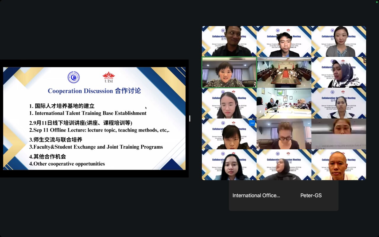 8月28日下午,我校与印尼国际精英大学首次合作讨论会议通过线上方式顺利召开。四川文化产业职业学院对外交流合作处、融媒学院、文商学院、文信学院相关负责人及印尼国际精英大学国际处主任鲁斯蒂卡莎莉·努格拉赫尼女士等11人出席会议。