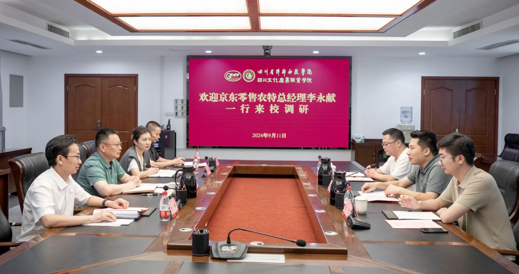 9月11日下午,京东零售农特总经理李永献、农特西南区负责人孟欣一行到校访问交流。校党委副书记、纪委书记李清勇和相关职能部门负责人在明慧楼217会议室参加座谈会,洽谈产教融合、校企合作事宜。