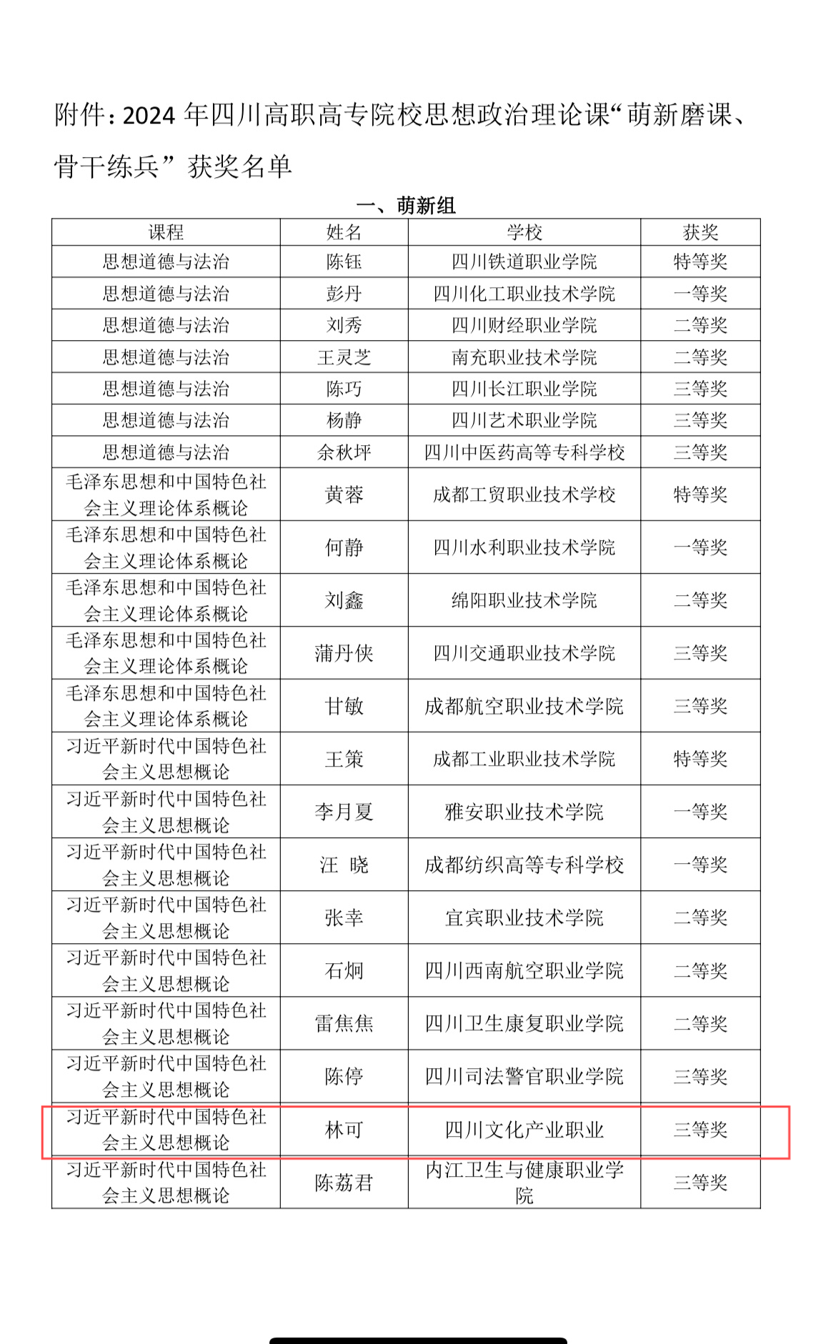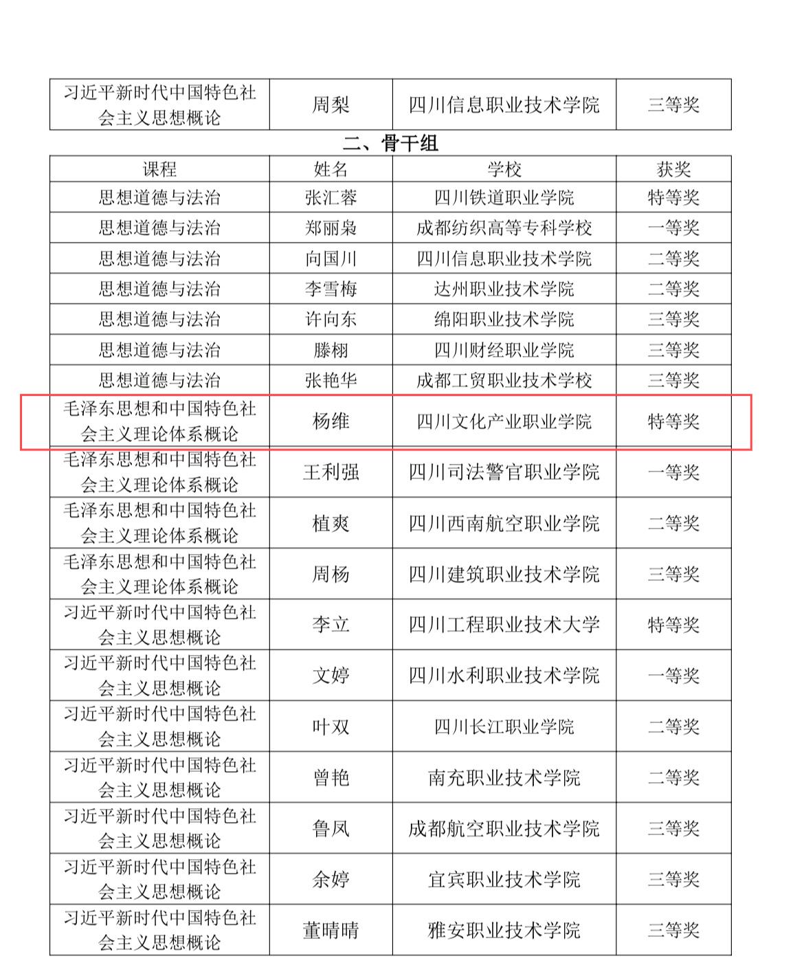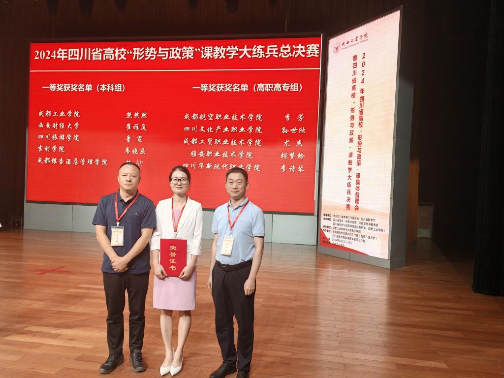近日,我校马克思主义学院教师在四川省高校思政课“萌新磨课”、“骨干练兵”和“形势与政策”课教学大练兵高职高专组决赛中荣获佳绩:杨维老师在《毛泽东思想和中国特色社会主义理论体系概论》课程的“骨干练兵”中,荣获“特等奖”;孙世欣老师在“形势与政策”课教学大练兵决赛荣获“一等奖”;林可老师在习近平新时代中国特色社会主义思想课程的“萌新磨课”中,荣获“三等奖”。