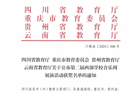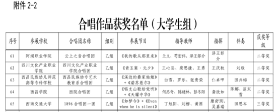 第二届西部学校音乐周展演活动8月26-29日在成都举办,根据近日公布的获奖名单,我校音乐表演专业推报的合唱作品《青玉案·元夕》获得大学生组二等奖。