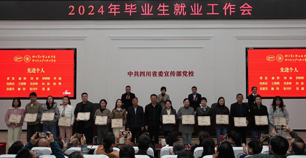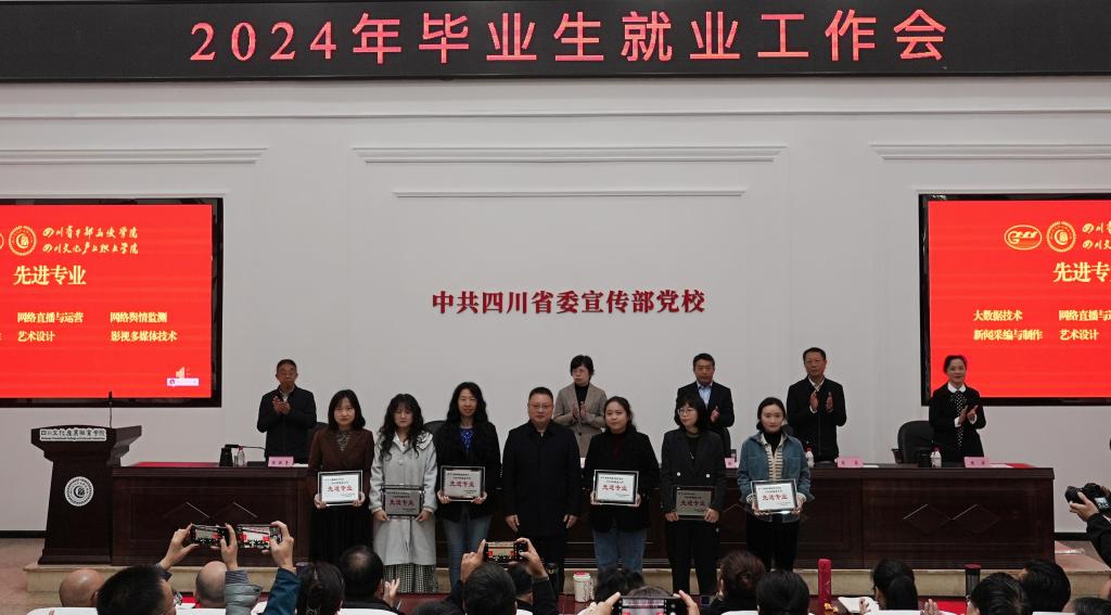 会议对2024年就业工作先进集体、先进专业、先进个人进行表扬,融媒学院党总支书记、大数据技术专业主任作交流发言。党政办公室、组织人事处、宣传统战部、学生工作部、校团委、教务处、招生就业处、对外交流合作处、马克思主义学院主要负责人,各二级学院党政主要负责人、全体中层干部和就业干事、辅导员,受表扬的先进个人参加会议。