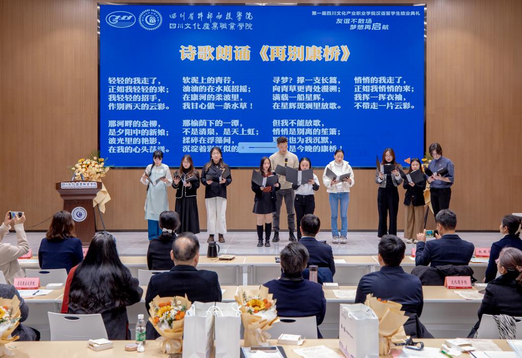 最后,留学生表演集体诗歌朗诵《再别康桥》,为结业典礼画上圆满的句号。我校第一届汉语语言留学生顺利完成学业,既是我校留学生教育工作的一个重要里程碑,也是我校国际化办学成果的一次生动展示。未来,我校将继续秉承开放包容的办学理念,为更多来自世界各地的学子提供优质的汉语教育服务,助力他们实现自己的梦想和抱负。