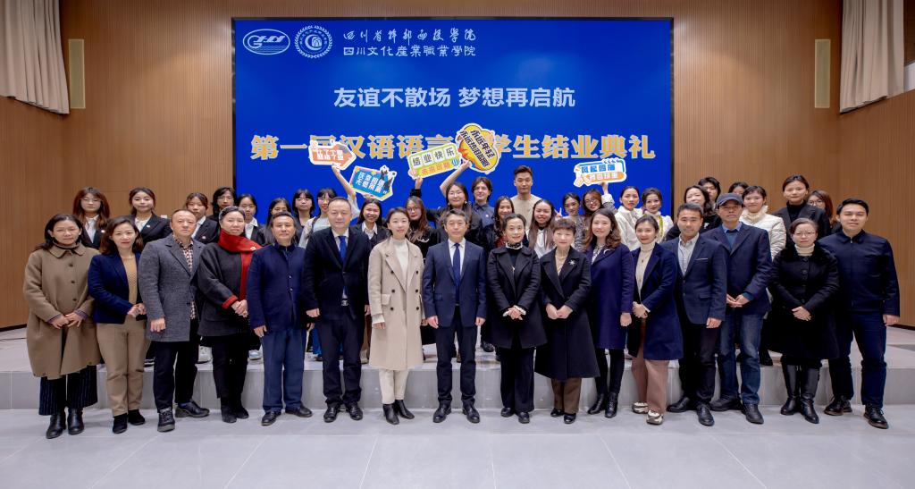 2025年1月10 日上午,我校第一届汉语语言留学生结业典礼在多功能厅举行。来自俄罗斯、塔吉克斯坦、泰国、越南、印度尼西亚等7个国家15名留学生顺利结业。本次活动由对外交流合作处和通识教育部共同举办。学校党委副书记、院长李中锋,副院长黄萍出席典礼。