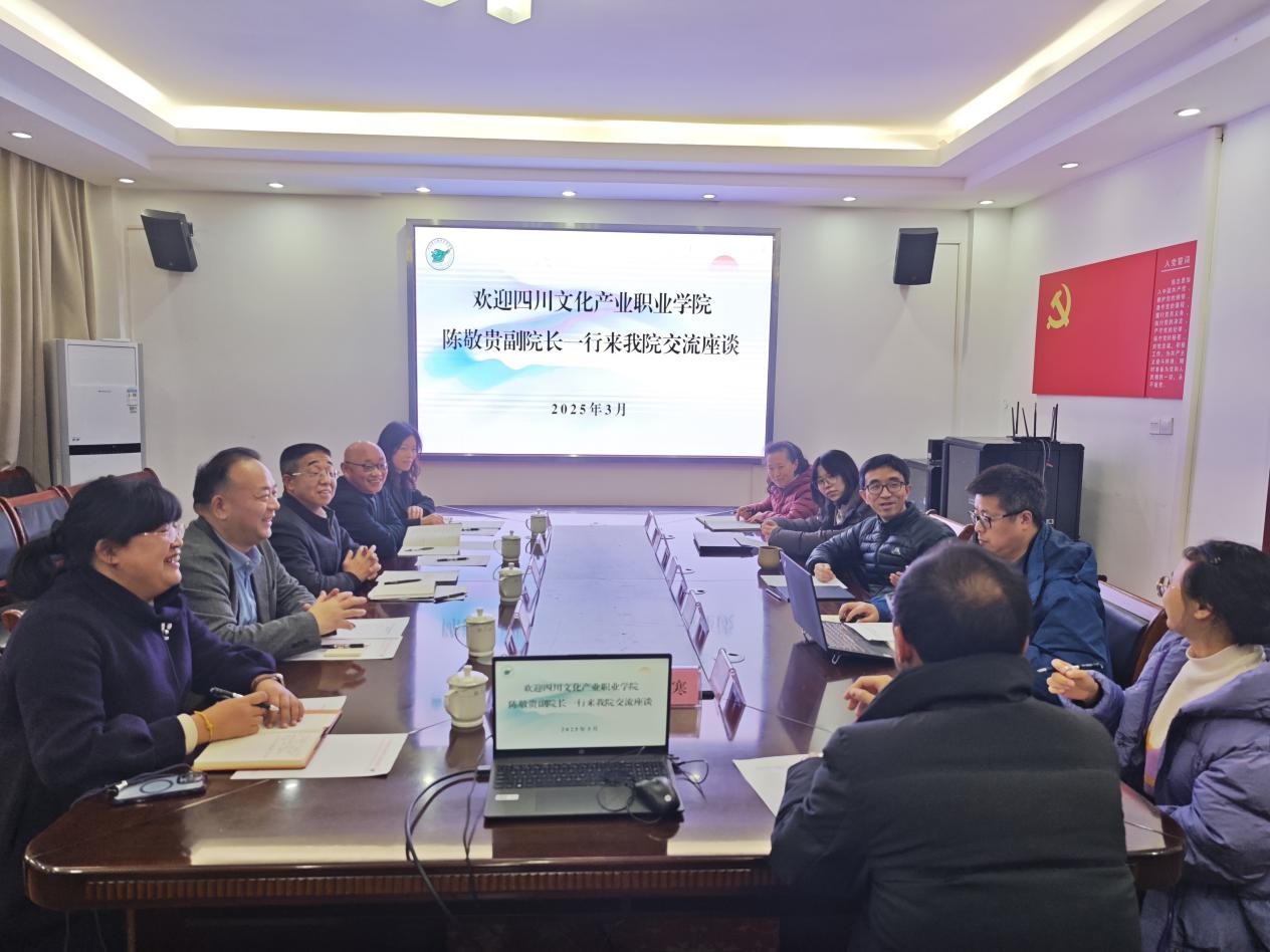 调研交流中,刘志岩副院长介绍了四川省文物考古研究院的业务内容和文物修复保护人才的需求情况等。陈敬贵副院长介绍了学院专业建设及人才培养情况,希望双方建立校地合作机制,在人才培养、专业建设、实习实训、产教融合等方面深化合作,共谋发展。