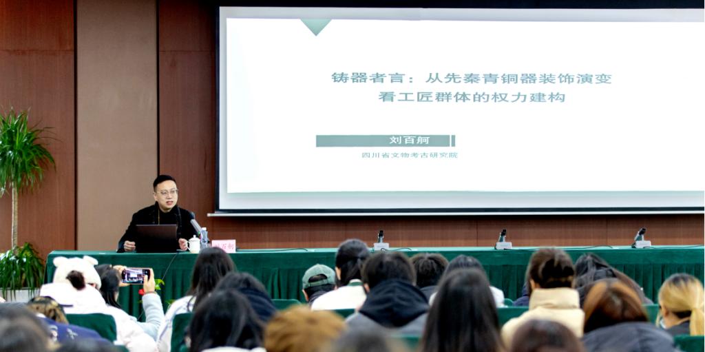 启动仪式后,四川省文物考古研究院博士后刘百舸以“铸器者言:从先秦青铜器装饰演变看工匠群体的权力建构”为主题,开启了首场讲座,通过生动案例和专业讲解,让听众领略到古代青铜器的魅力,赢得阵阵掌声。