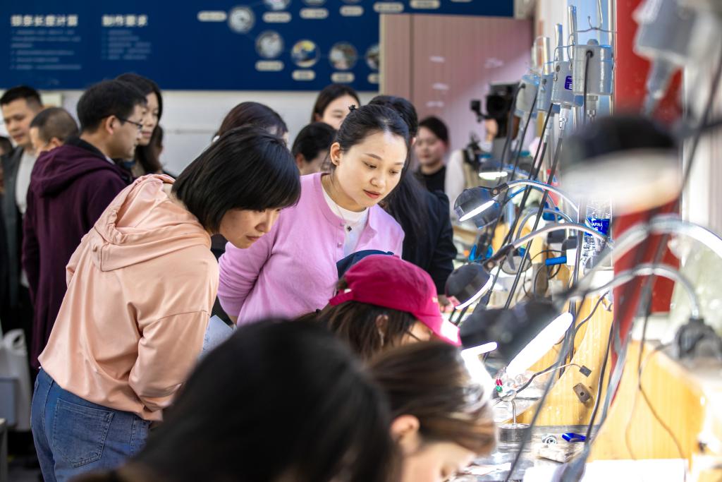 来校期间,达州市区县招考系统一行参观了我校校史馆、非遗扎染环境创客设计工坊、大师工作室和第46届世界技能大赛珠宝加工项目中国集训基地,体验了“文产四季市·春祈”活动。