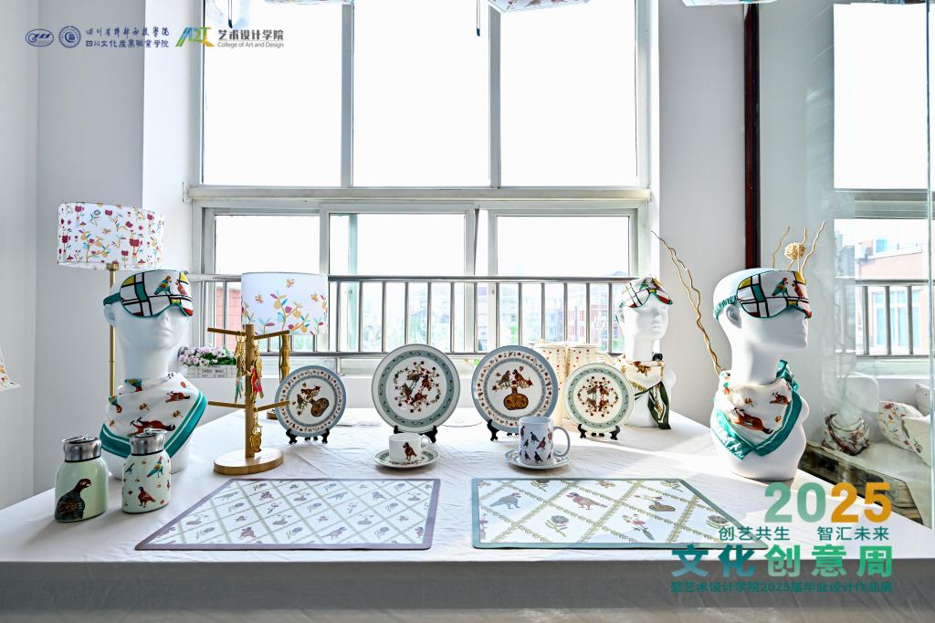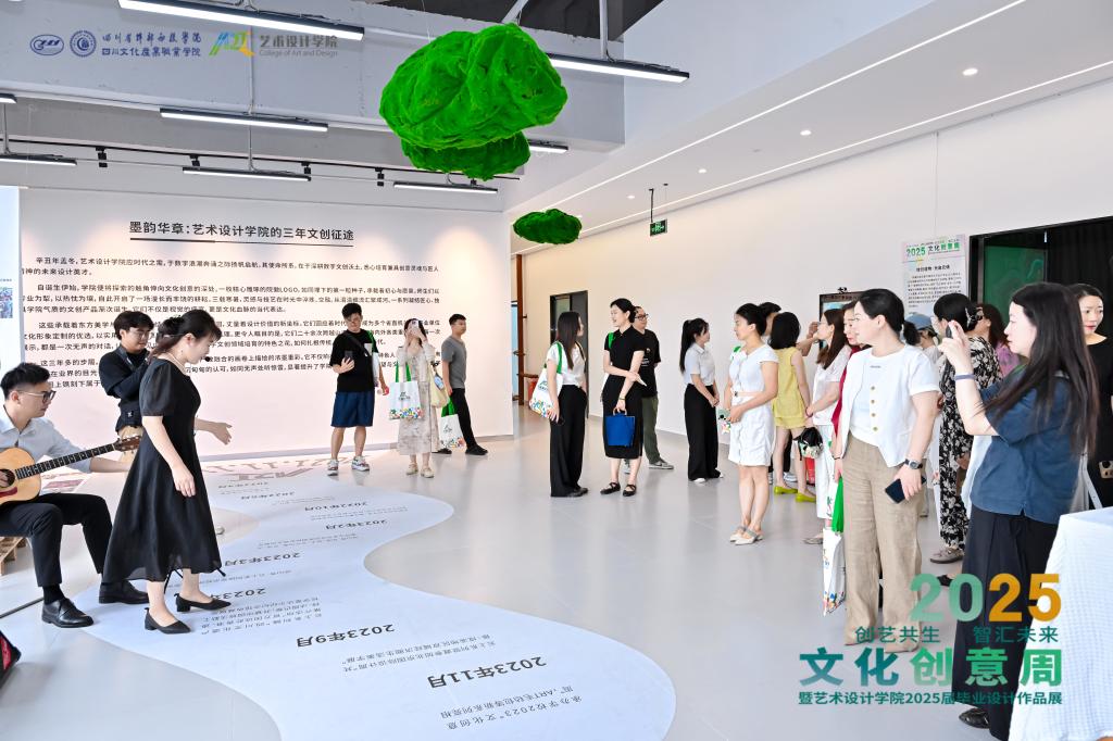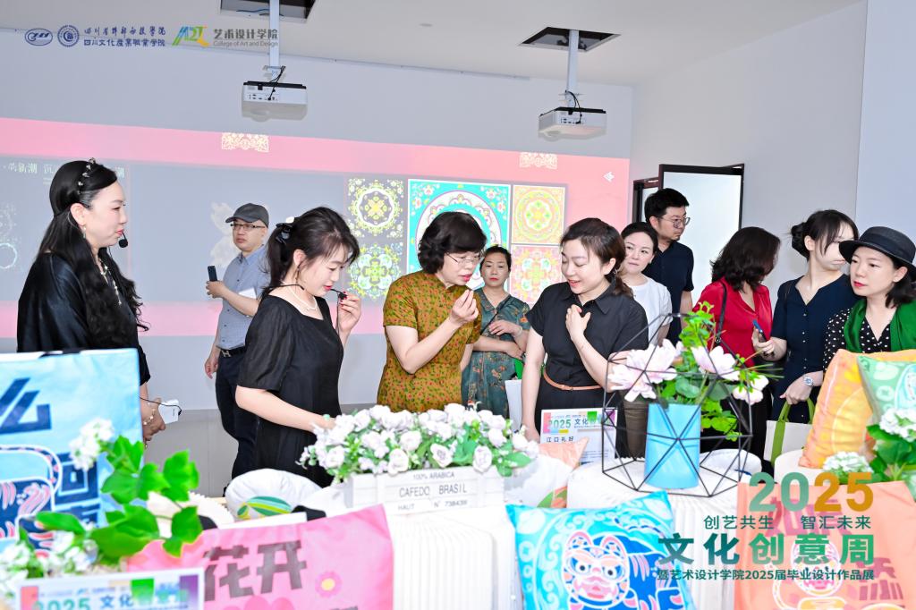 “碳索未来・城启无界” 展区中,群核科技提供 BIM 技术,学生利用废弃建材打造公共艺术矩阵,设计低碳社区模型。“在地鼎新・乡见赋能” 展区聚焦校地合作,将道孚藏纹、桃坪羌寨符号转化为现代数字标识,推动甘江镇农旅与电竞融合、夹江古法造纸智能化升级。“次元破壁・超维现场”展区,以企业真题和 GGAC 大赛为载体,通过环绕投影等技术打造虚实交互作品。“蜀韵新创・双向赋能”展区展出成都诗婢家等企业提供标准支持下的文创产品,实现校企双向赋能,促进人才培养与成果转化。