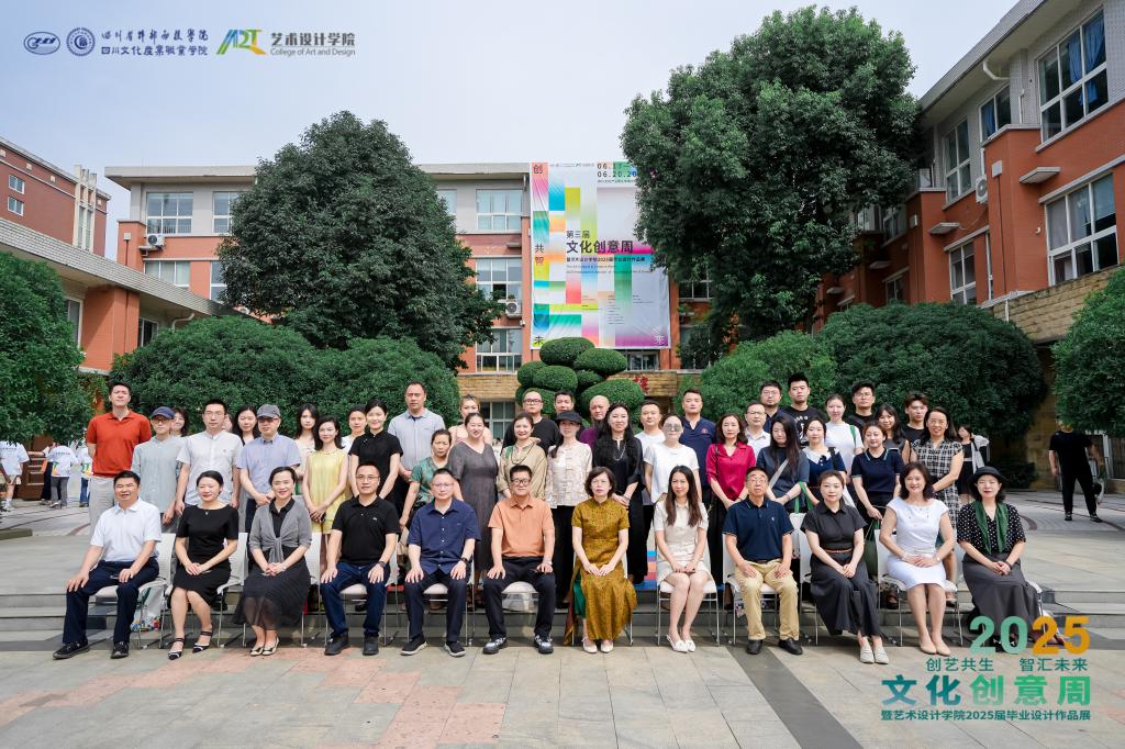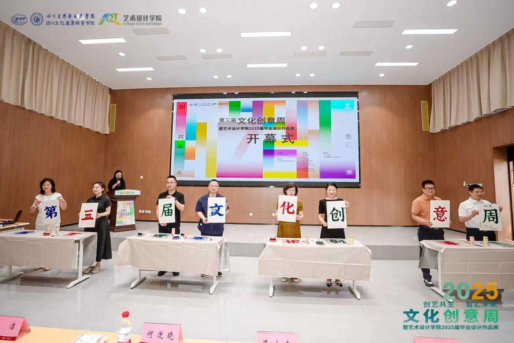 6 月 17 日,以“创艺共生·智汇未来”为主题的四川文化产业职业学院艺术设计学院第三届文化创意周暨 2025 届毕业设计作品展盛大启幕。学校党委书记何迎晓,党委副书记、纪委书记李清勇,党委委员、副院长陈敬贵、黄萍等校领导,政府、企业嘉宾共80余人出席启动仪式。