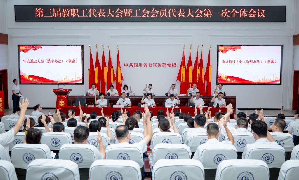 7月11日,四川省干部函授学院、四川文化产业职业学院第三届教职工代表大会暨工会会员代表大会第一次全体会议胜利召开。校党委书记何迎晓同志致辞。省教科文卫工会女职委主任、四级调研员郭佳出席会议并讲话。部分老领导、退休教职工代表、驻村干部代表作为特邀代表,以及非代表的各部门负责人列席会议。大会由校党委委员、副院长朱霖主持。