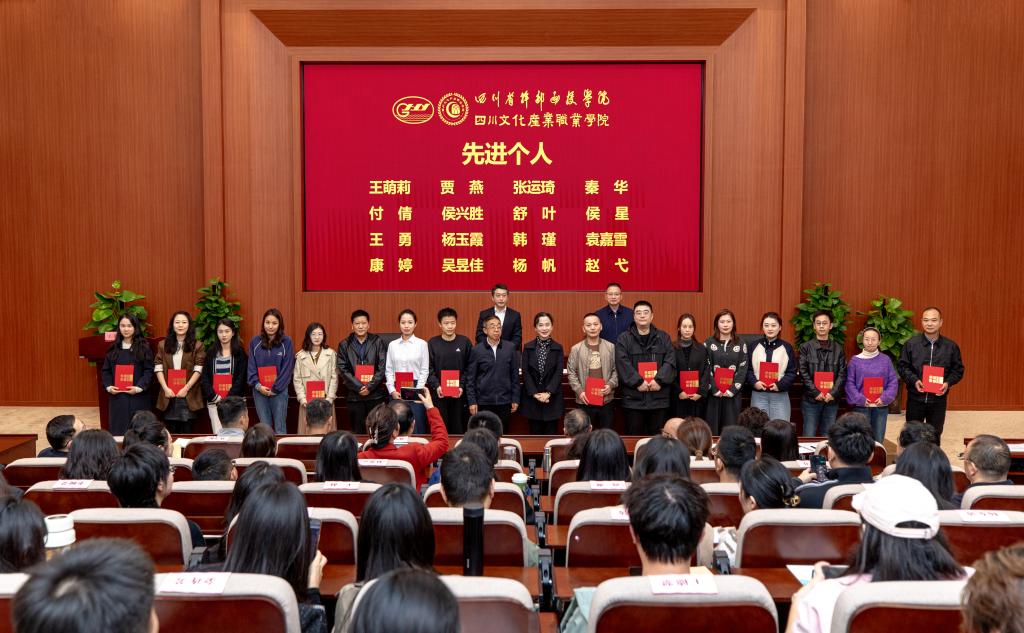 副院长陈敬贵宣读了学校表扬决定,表扬了2025年就业工作4个先进集体、5个先进专业、16名先进个人。文化信息学院党总支书记、服装与服饰设计专业主任、辅导员老师代表作交流发言。