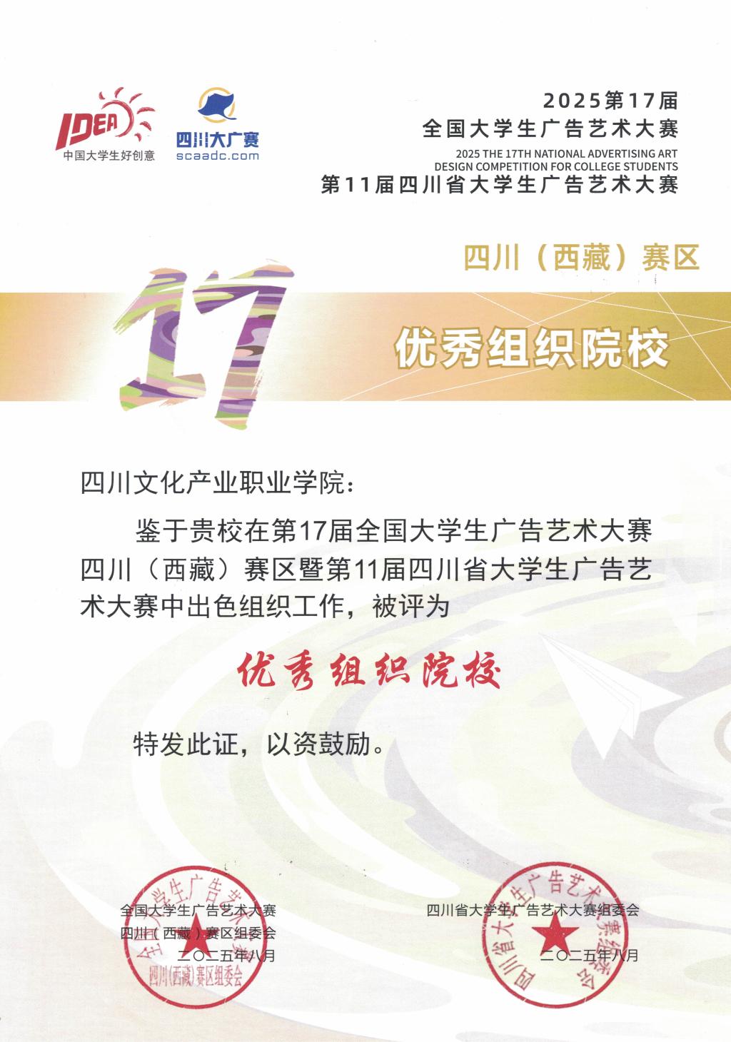 近日,2025年第17届全国大学生广告艺术大赛四川(西藏)赛区省赛暨第十一届四川省大学生广告艺术大赛评选结果揭晓。我校学子表现优异,共荣获一等奖5项、二等奖21项、三等奖38项。邱月、李腾、邓桦、唐溪若等4名教师获评“优秀指导教师”,学校荣获“优秀组织院校”称号。本届大赛设有平面类、视频类、动画类等11个竞赛类别。我校参赛学生在教师精心指导下,凭借独特的创意视角和扎实的专业功底,创作出一批高质量作品,在激烈的竞争中脱颖而出,获奖等级和数量均取得新突破。
